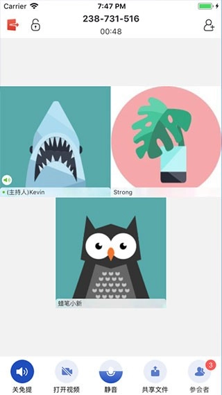 并看到有关参会的信息和共享文件,如下图所示: