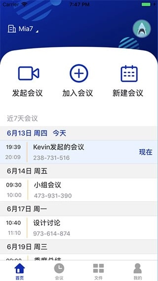 登录成功后,进入主界面,点击发起会议,就能查看当天的会议。