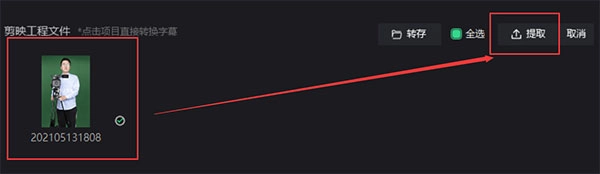 接下来,打开剪映主页,点击右上角的源文件提取;