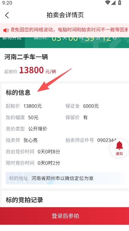 3、查看标的信息后,登录参拍完成操作。