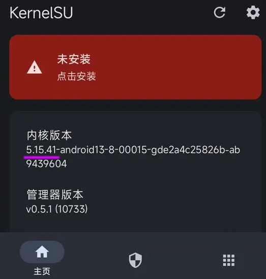 二、接着安装KernelSU,要保证内核版本在5.10及以上(要是内核版本低于5.10,建议选择使用Magisk)