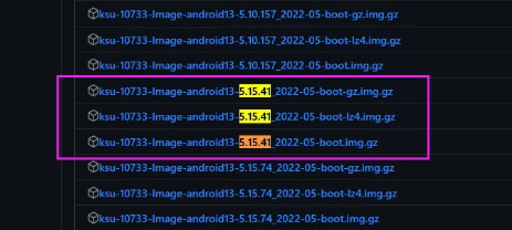 三、需使用与设备内核版本相匹配的KernelSU内核。举例而言,小米13的内核版本为5.15.41,若无法找到完全一致的版本,选择版本最为接近的即可(如5.15.XXX系列)。一般情况下,骁龙设备适配boot.img格式,联发科设备适配boot-gz.img格式。若某一压缩格式能成功引导设备开机,后续操作可沿用该格式。倘若三个版本均无法实现正常开机,则可尝试通过手动修补的方式解决,具体可使用patch-boot-image工具进行操作。
