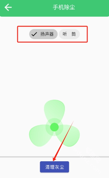 若要清理扬声器灰尘,点击扬声器;若需清理听筒,点击听筒;最后点击清理灰尘按钮即可。