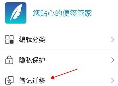在弹出的菜单中,找到并点击“笔记迁移”选项;