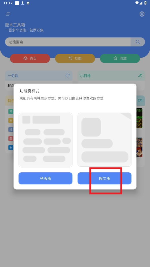 功能页提供“列表版”和“图文版”两种展示模式,可适配不同用户的使用习惯。