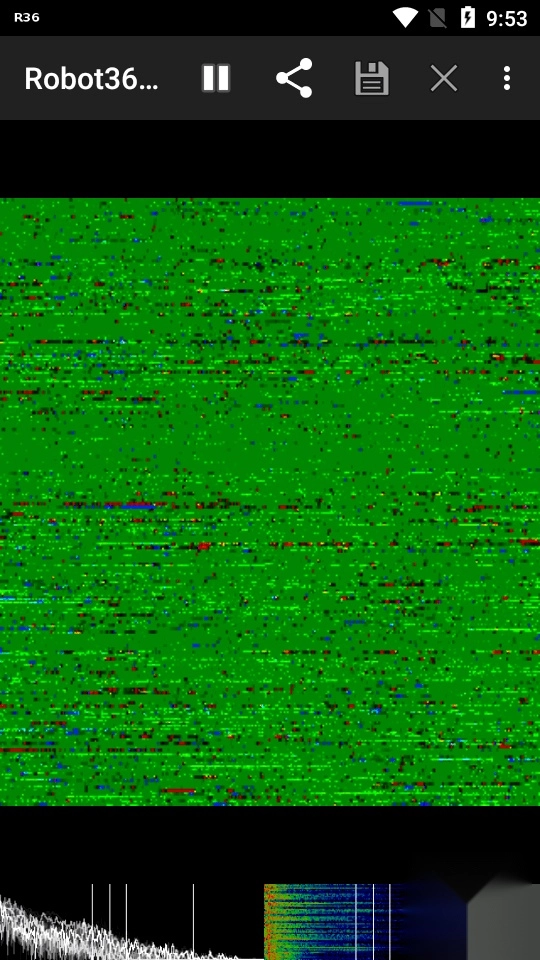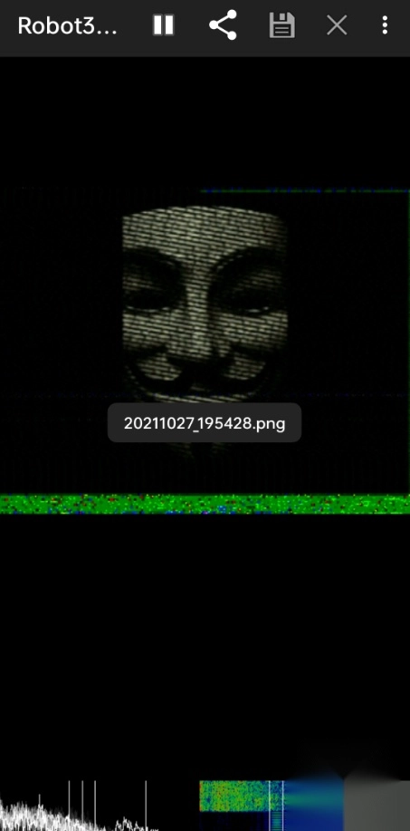 打开robot36后,麦克风会自动接收音频信息,播放完成后即可加载加密的音频图片。