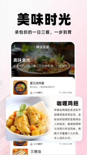 多元菜谱库:汇集了从家常便饭到异国风味的各类菜谱,能满足您对美食的探索欲。