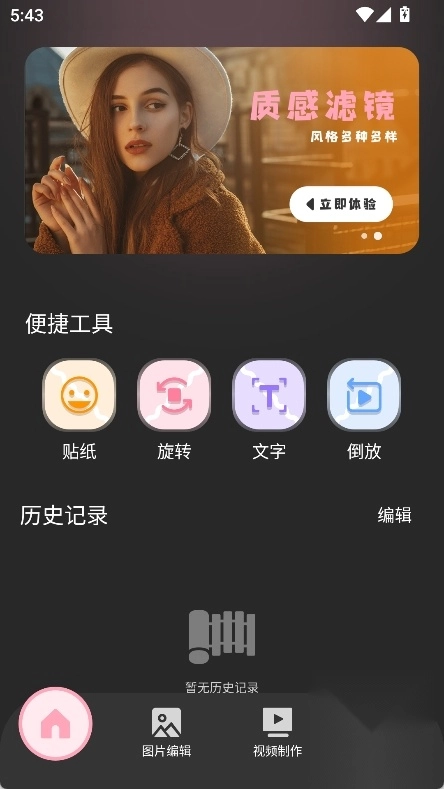 打开软件,在首页进行视频编辑,工具免费。