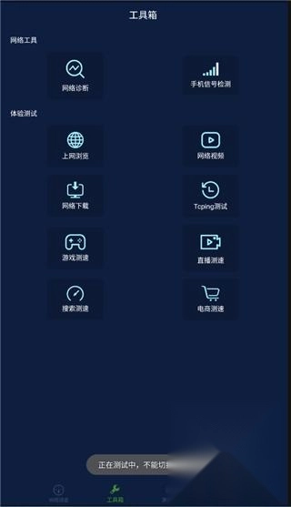 工具箱提供网络诊断、手机信号监测等功能;