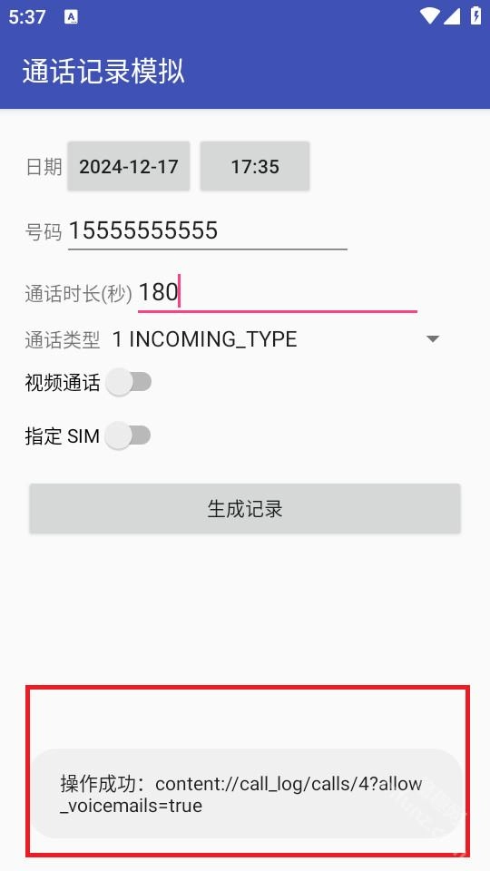 通话记录模拟的安装包名为通话记录工具,这是一款能自定义设置虚拟来电的实用工具。用户可以在该通话记录模拟软件上自主设定来电号码、来电时间、通话时长等各项信息。而且这款通话记录模拟手机版不需要root权限就能正常使用,无论是生活场景还是工作场景的需求它都能满足,操作起来简单易懂,助力大家一键生成以假乱真的通话记录!