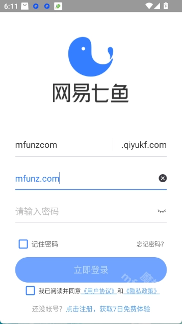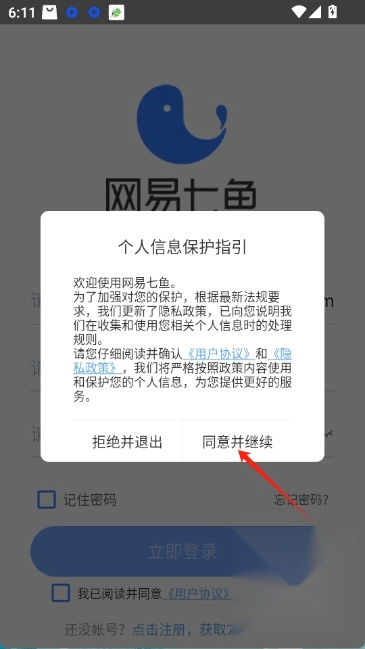 网易七鱼手机版并打开。点击同意并继续