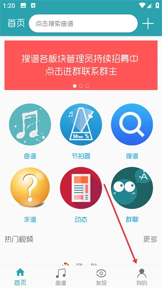 在搜谱首页,点击右下角的【我的】选项,就能进入个人中心页面。