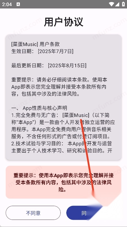 打开菜蛋Music软件点击同意并继续