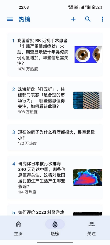 Hydrogen知乎最新版作为知乎的第三方客户端,能让用户无需打开知乎就能浏览平台内的帖子。该客户端主要包含主页、热度和关注三大板块,并且支持点赞与评论功能,推荐喜欢浏览知乎的用户尝试体验。