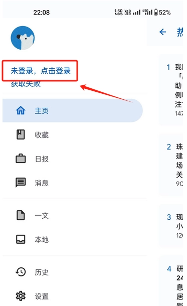 首次打开Hydrogen应用,首先看到的是简洁清爽的首页。要开始使用的话,得先完成登录操作。点击屏幕左上角的三条横线按钮,就能进入下面这个界面。