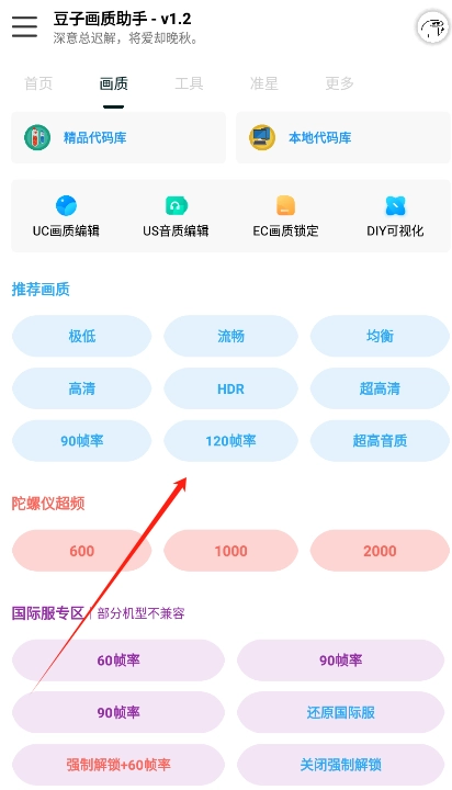 豆子画质助手可以改120帧,具体操作教程如下: