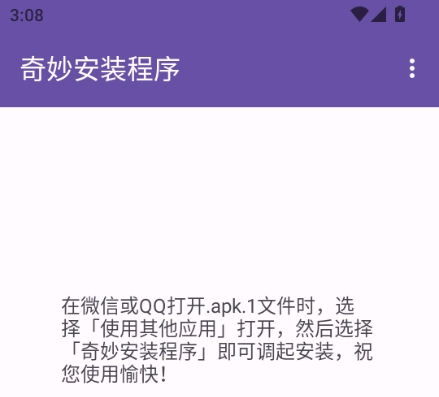 奇妙安装程序是一款第三方应用安装工具,当我们在微信或QQ里需要打开apk文件时就能派上用场,可直接通过奇妙安装程序手机版启动安装流程。该软件体积小巧、使用便捷,要是你不想用手机自带的默认安装程序,这款奇妙安装程序会是不错的选择。