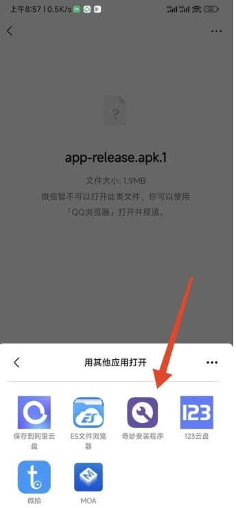 当在微信或QQ里收到.apk文件时,选择【使用其他应用】来打开它。