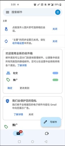 3-支持Gmail的会话式界面,并且能与电脑版Gmail同步等功能。