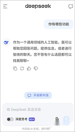 deepseek正版是一款十分实用的智能AI对话工具平台,它主要具备文本创作、文档整理以及智能对话等多样功能,能助力用户轻松产出高质量的文本内容,还能智能梳理文档的内容排版,为用户提供优质的办公服务。当然,要是你在生活中碰到各类数学、常识、技巧之类的问题,都可以向它咨询,平台会运用专业的语言分析与深度思考技术,以专业的表达和高精准的内容为你解答,提高用户的生活效率。
