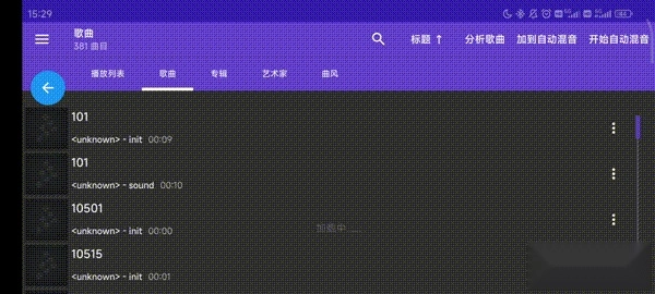 可以按照标题、艺术家、所属专辑、BPM数值或者音乐时长等条件,对音乐库内的内容进行排序整理。