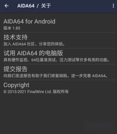 点击“关于”选项,就能查看AIDA64软件的版本信息等内容。