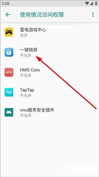 用户同意数据共享后,可进入设置页面,找到一键锁屏功能并开启其应用访问权限。