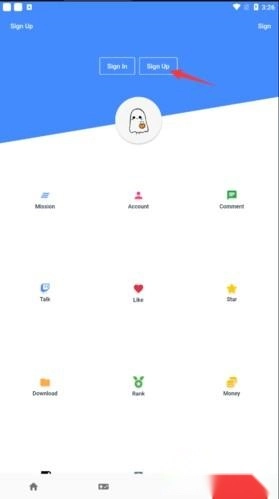 点击软件底部第四个小图标进入对应页面后,再点击小幽灵头顶右侧的按钮即可进入注册页面。