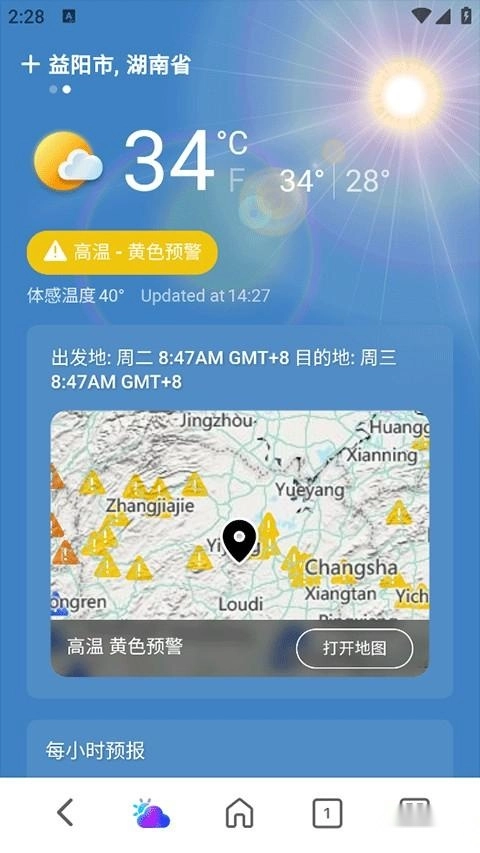 应用还提供逐小时天气预报服务,能精准呈现每一刻的天气变化情况,方便用户随时了解并掌握天气动态。