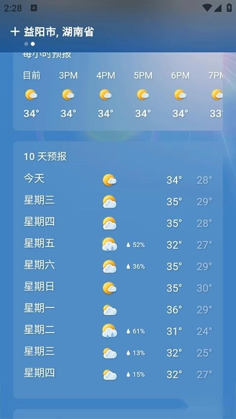 除了当天的天气状况,您也可以向下滑动页面,查看未来10天的天气预报。