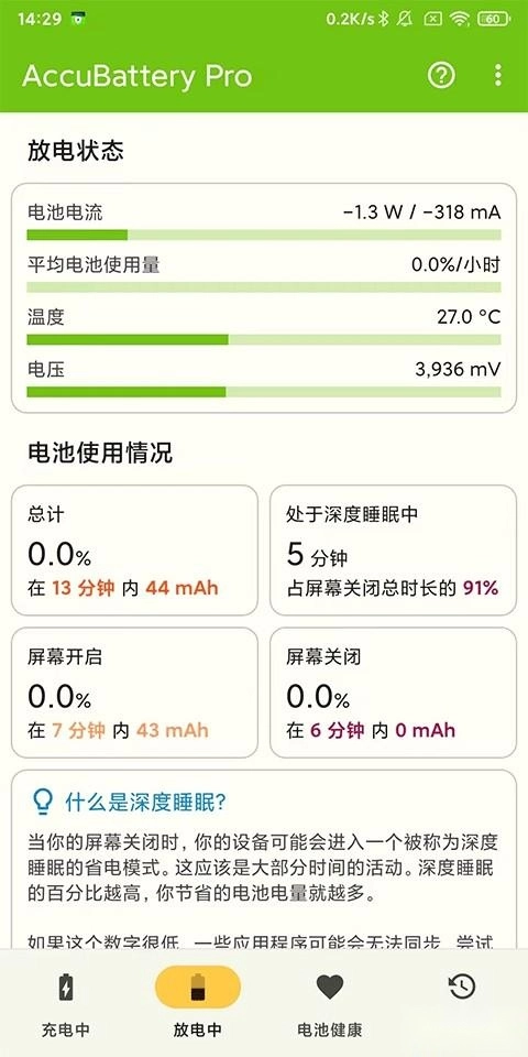 AccuBattery借助电池充电控制器所提供的信息,能够对电池的实际使用状况进行测量。把测量结果与前台运行的应用信息相融合,就能明确各个应用的耗电量。Android系统计算电池耗电量时,依据的是设备制造商给出的参数,例如CPU的耗电量大小。但实际上,这些计算得出的数值往往存在较大的偏差。