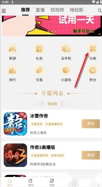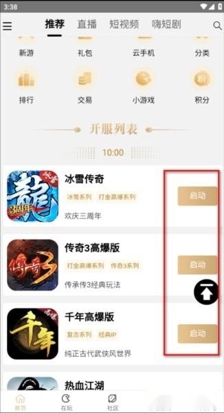 首先进入软件首页,能看到最新的开服列表,要是里面有我们想玩的游戏,直接点击启动就行。