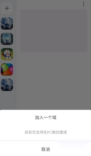 目前手机端仅支持加入已创建好的域,若需创建新域,请通过PC端操作。