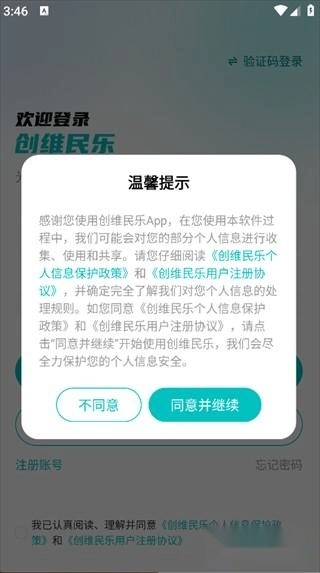 点击‘同意并继续’,即可进入登录页面;