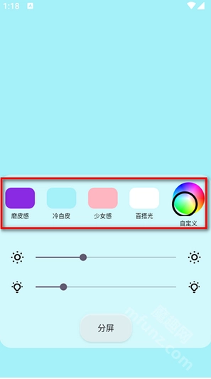 界面设计简洁直观,用户可根据喜好设定个性化背景色,还能灵活调节灯光亮度。