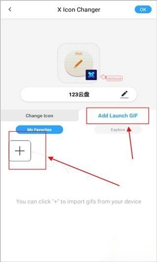 点击“add launch gif”按钮,接着点击加号图标来添加新的GIF动图,这样在新应用图标启动的瞬间,就能播放趣味十足的GIF动画了。