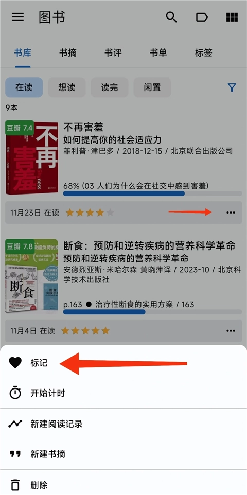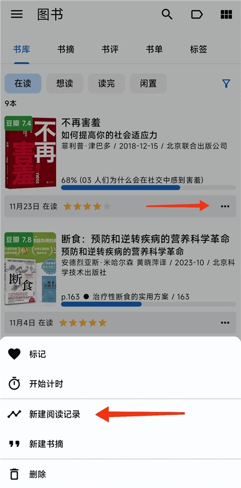 3、如果想要标记时间是某个特定的时间,比如2022-12-01,那么可以通过新增【阅读记录】来完成。