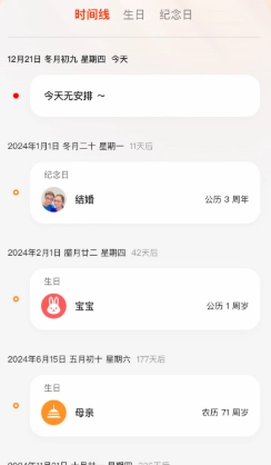3、可以在时间线界面,查看各种特殊日子的日期。