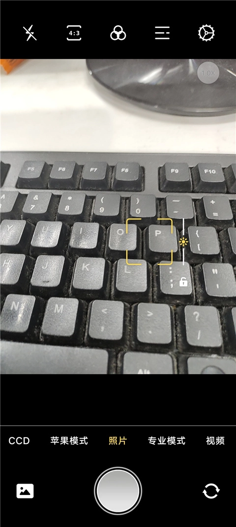 1、进入软件首页,里面为用户提供了苹果模式、ccd模式、专业模式等等拍照模式;