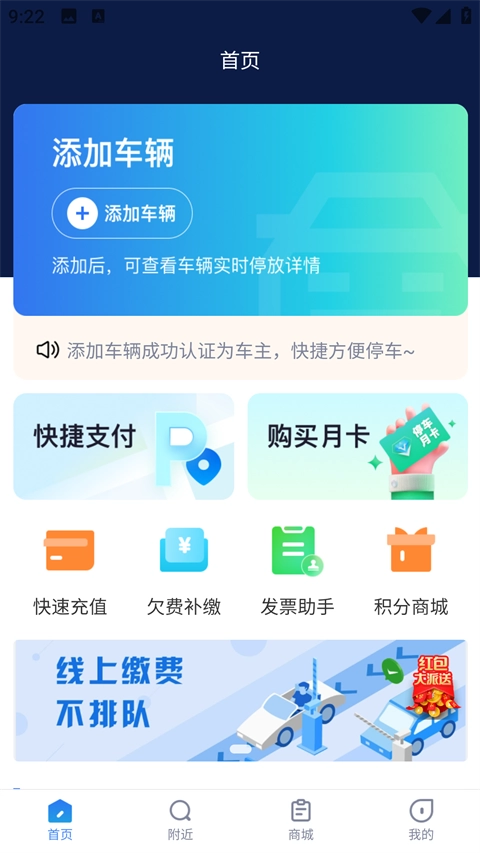 1、快速停车缴费,只需动动手指节省时间,摆脱取卡的烦恼;