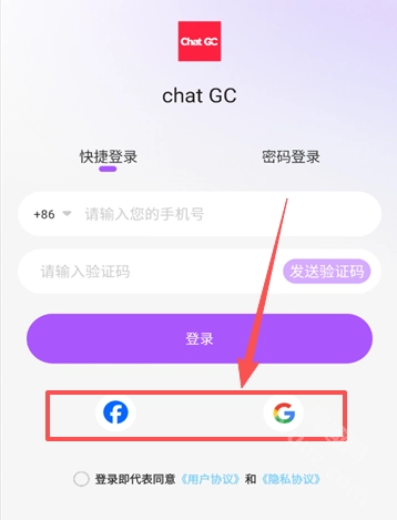 打开ChatGC软件点击同意进入