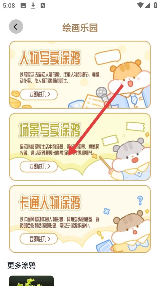 在底部导航栏,点击【绘画乐园】,进入绘画选择页。