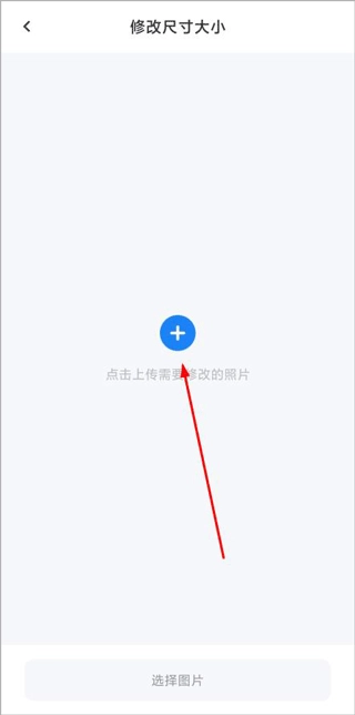 点击首页的改尺寸功能,打开后在下方选择并上传需要修改的图片。