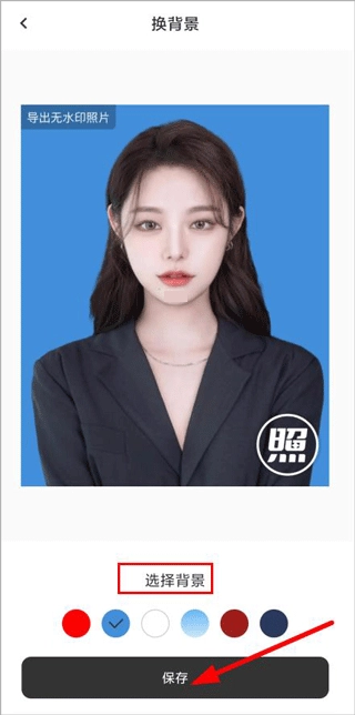 添加照片后,选择替换的背景颜色,保存即可。
