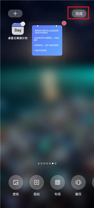 组件成功添加至桌面后,点击完成按钮确认