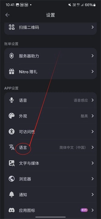 在“应用程序设置”页面里,找到“语言”选项,点击它旁边的下拉菜单。