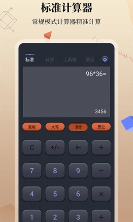 这款计算器具备历史纪录功能,便于用户随时查阅过往计算记录。除了高效的基础计算功能外,其科学计算模式还支持三角函数运算、弧度制转换以及各类数学常量调用等专业计算需求。无论是日常简单的数值计算,还是专业领域的复杂运算,它都能全面满足用户的使用需求。