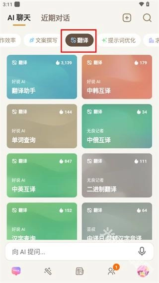 在本站完成安装后打开软件,进入“AI聊天”界面,找到并选择“角色扮演”功能,AI就能以用户选定的角色身份开启对话互动。