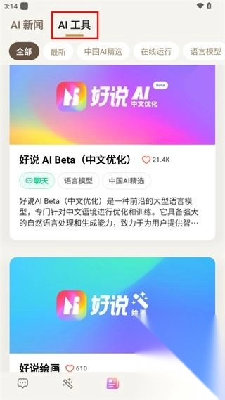 进入“AI工具”页面后,用户可以在该页面找到大量AI软件,同时还能获取这些软件对应的使用教程。