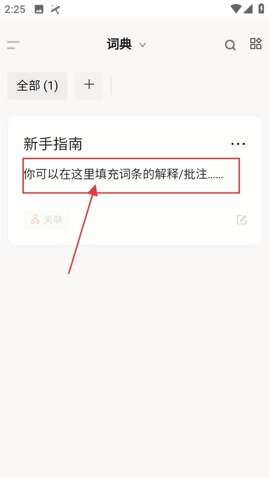 2、全部1标签显示当前词条数量,着重提示用户填写词条解释,关联标识和编辑图标方便用户快速操作,加号按钮支持随时新增词条内容。